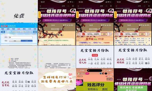 免费对名字进行预测分析,目前社会上的名字变更多采用来自日本的“五宫格剖面法”,以及名字的在线分析评分系统,都是按照这种方法。但它有巨大的局限性,而且它开始。
