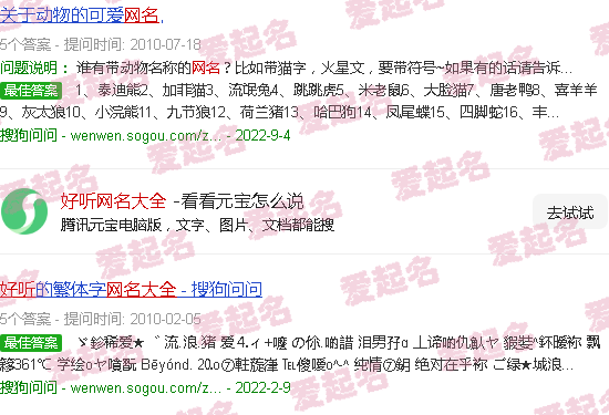 关于《好网名全集》内容。