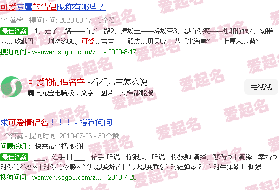 关于“可爱情侣名字”