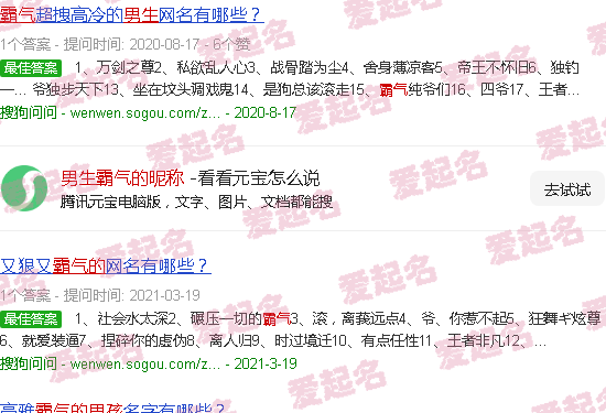 关于《男生霸气昵称》内容。