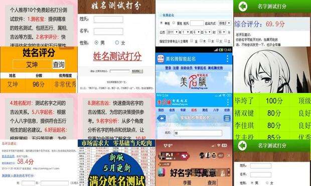 网名打分,就按三才,五格数是吉祥,吉是多分,猛是少分,最简单的道理,如姓氏是:林、周、王、金、关、纪、易、孟、宗、沈、卓、帝、曲、杭、穆、居、吴、兴、尚、艾、明、齐等,他们的姓氏都是猛的,你得改姓吗?误区五:网路打分,比较可耻和故意误导客户,即使有些客户有自己的名字和缘分非常完美匹配,数学上,五个非常吉祥的名字,分数不是很高,这样的网络软件,简直就是为了误导客户更多。