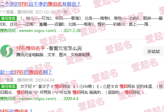 关于“好情侣名字”的内容。