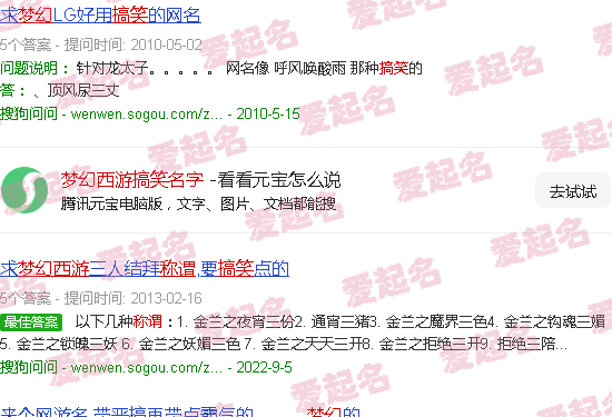 关于《梦幻西游搞笑名字》内容。