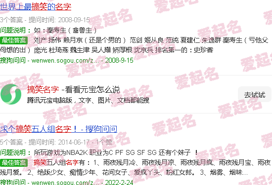 关于“搞笑名字”的内容。
