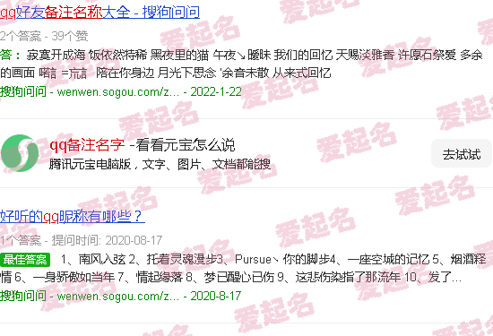 QQ网名。