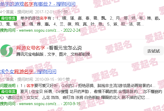 关于“网络游戏女号名称”的内容。