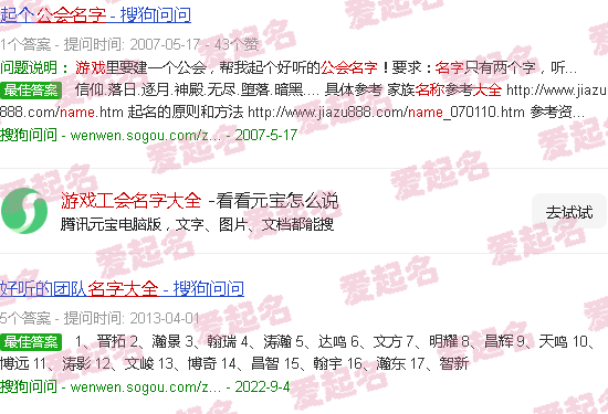 关于“游戏公会名称收集”的内容。