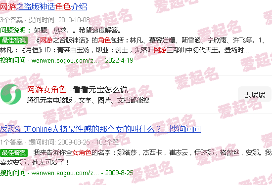 关于“网络游戏女性角色名称”的内容。