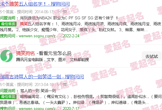 搞笑五人的名字分别是:1、雨夜残月寒、雨夜残月凉、雨夜残月疯狂、雨夜残月宝、雨夜残月恋。2.绝版女孩、痴情男孩、花童、疯狂女孩、粉红女孩。3、烟熏味。