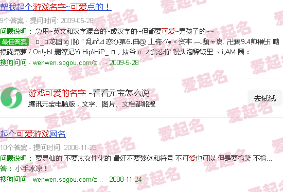 关于游戏可爱名称。