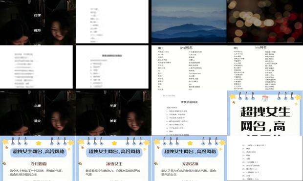 1、撩妹美女2、温柔女杀手3、美貌惊艳你4、蓝色妖姬5、烦恼少女6、爱吃灰狼的兔子7、王权浪子8、悲伤的流浪者9、最酷少女俱乐部社长10、穿校服还是范11、野猫郎青。