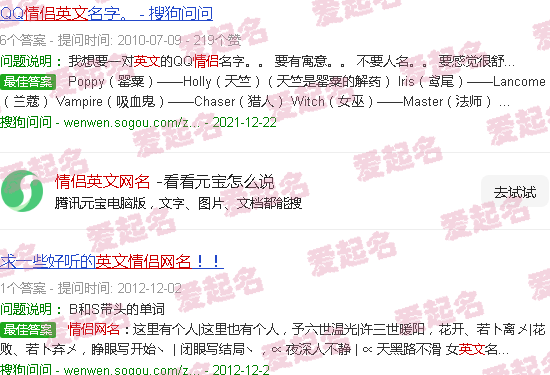 关于“情侣英文网名”的内容。