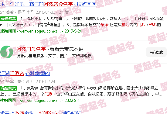 关于“游戏宗派名称”的内容。