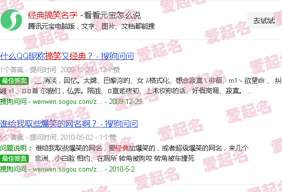 关于“经典搞笑名字”的内容。