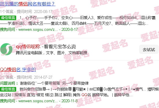 关于“QQ情侣昵称”内容。