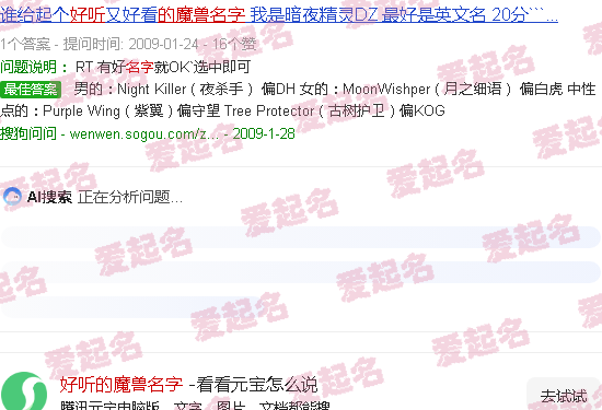 关于“好魔兽名字”的内容。