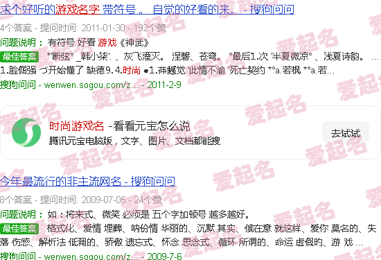 今年最火的非主流网名。