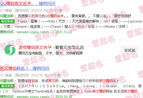 关于《游戏情侣的英文名字》内容。