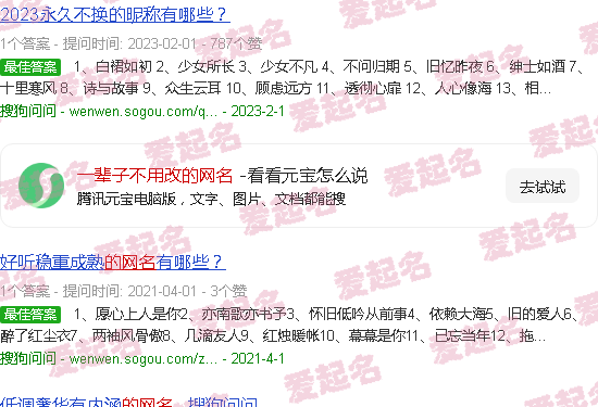 关于“一辈子不需要改的网名”的内容。