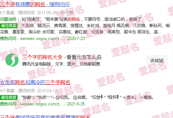 关于“三字网名合集”的内容。