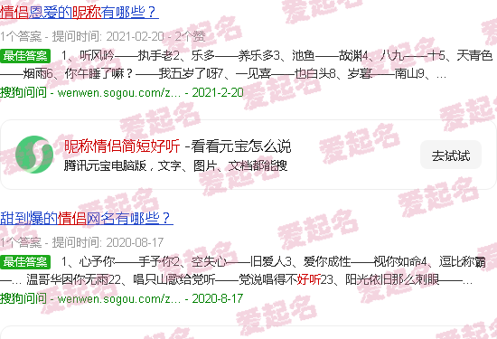 关于《昵称情侣短美》内容。