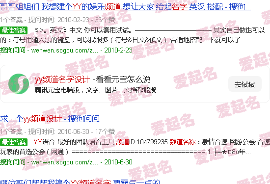 关于“YY频道名称设计”的内容。