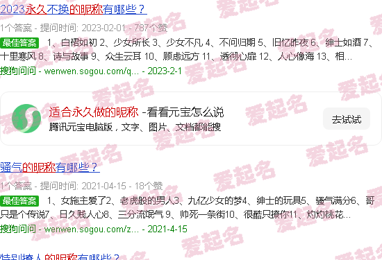 关于“适合永久的昵称”
