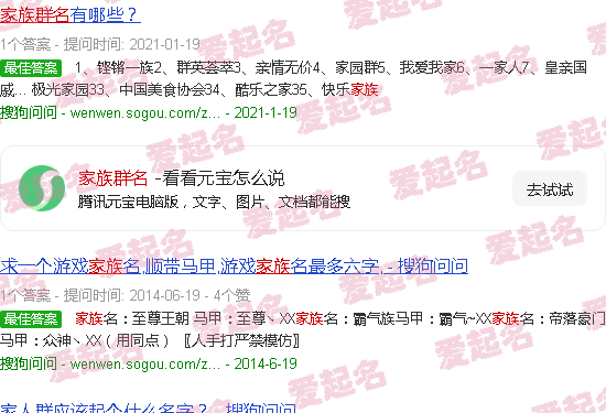 1、铿锵家族2、英雄云集3、无价之家4、家群5、我爱家人6、家人7、皇亲极光之家33、中国食品协会34、酷家35、幸福家庭。