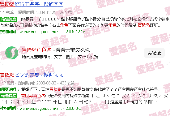 关于《冒险岛》角色名称。