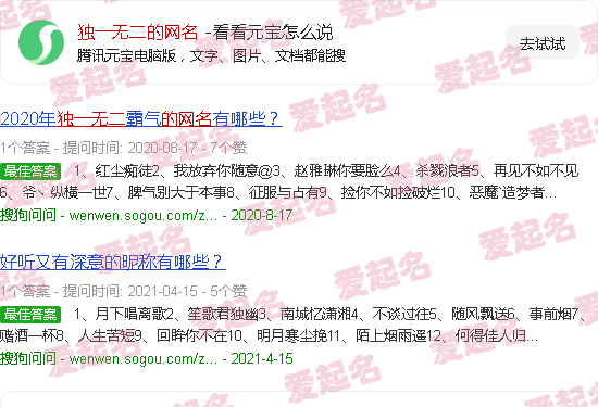 关于“唯一网名”的内容。