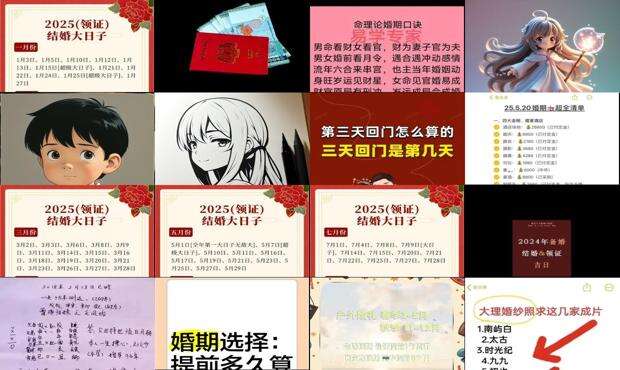 选择吉日俗称第二天,即男方向女方求婚期。首先,请阴阳先生计算吉日,避免单日、晦日、双月双日,花朝节和腊八节的日子最多。选好后,在红纸上写下快乐的日子,由媒婆准备礼物。