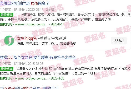 关于“女孩的QQ名”内容。