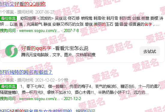 关于“好看的QQ名字”内容。