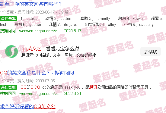 关于“QQ英文名”的内容。