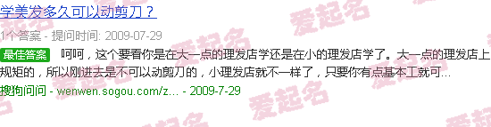 呵呵,这就看你是在老牌理发店还是小理发店学习的。较大的理发店有规矩,刚进去的时候不能用剪刀,但小的理发店就不一样了,只要有一点基础工作就行了。