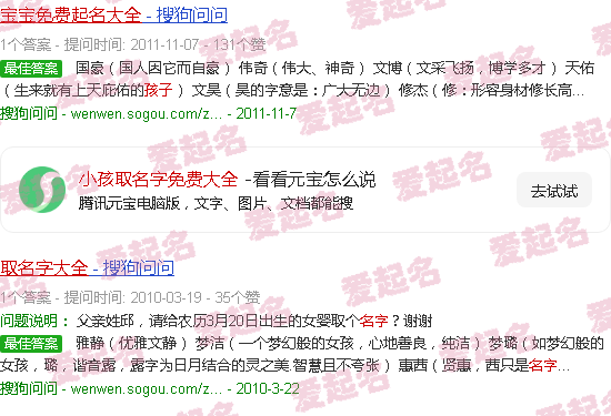 关于“免费收集孩子名字”的内容。
