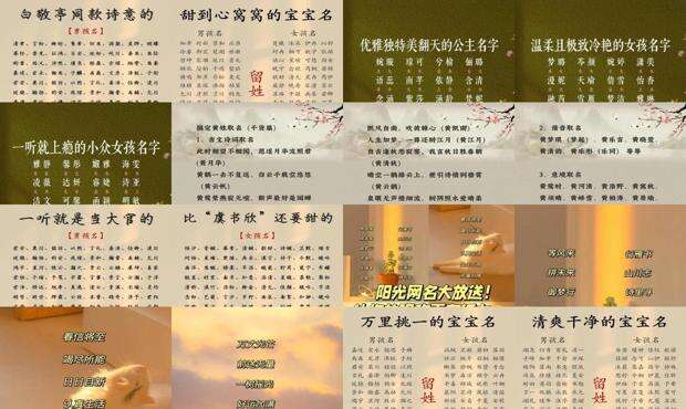 拥有一个好听的名字,或者给孩子起一个迷人的名字,是人生的一大乐趣!你我未必能上马定天下,文字也拿不起笔稳天下,动动脑筋,花点心思,留一个。