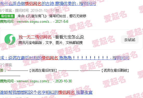 非常适合您的甜蜜情侣的网名。